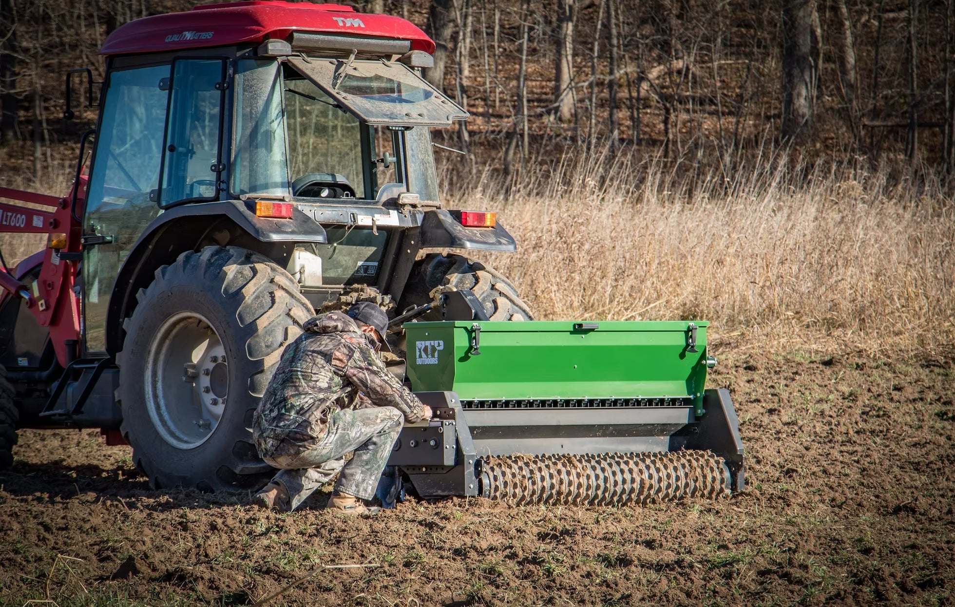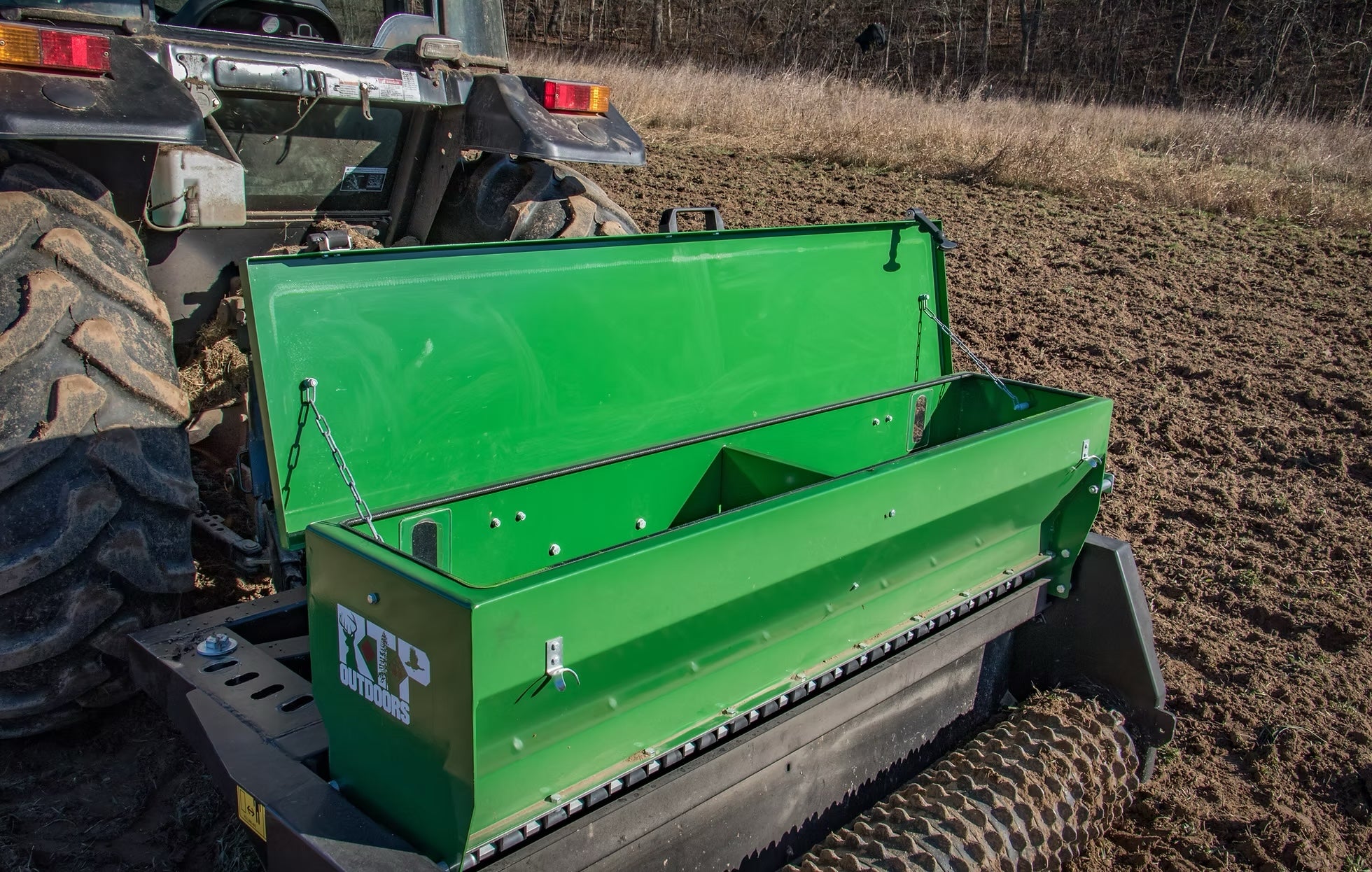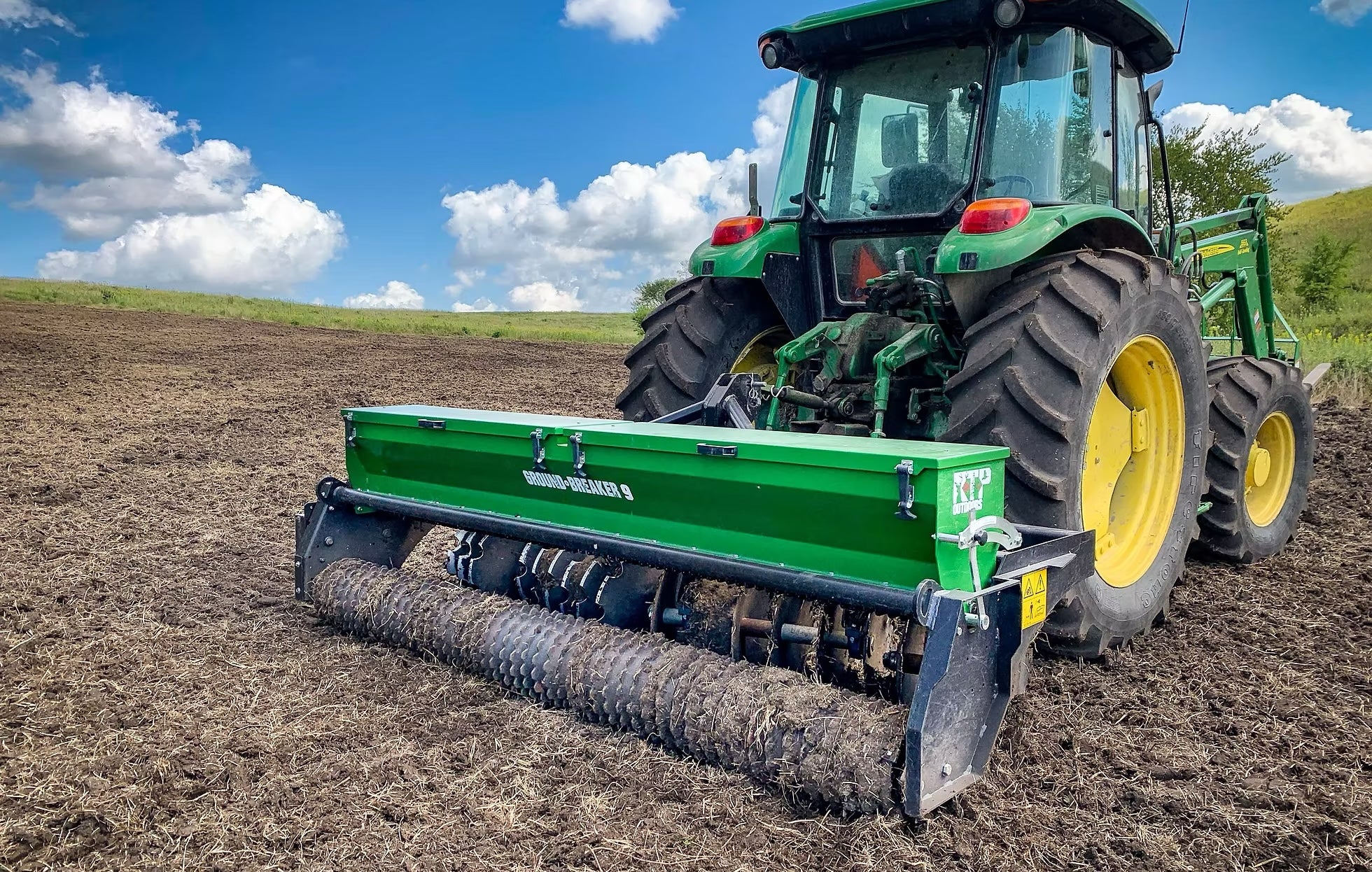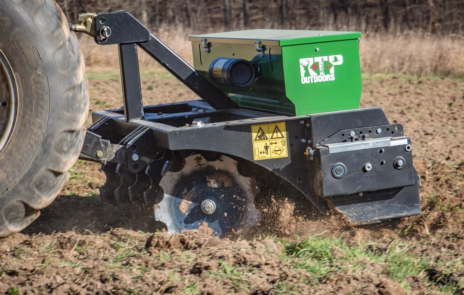 The Ground-Breaker from RTP Outdoors is a 3-in-1 food plot implement. It has a set of adjustable cutting discs on the front followed by a seed hopper that spreads any seed from corn to clover with an industry leading calibration system that has unequaled accuracy and simplification. This is followed by a culti-pack roller, which smooths out the soil and gives you a good seed to soil contact. Obviously this isn't a Genesis No-Till, but if you prefer to turn the soil or if you don't want plant in rows this is your machine. It would be perfect for clover, brassicas, native grasses, cover crops and more. The Ground-Breaker is available in a 3' model with an optional tow kit for UTV's, a 6' three point model, and a 9' three point model.